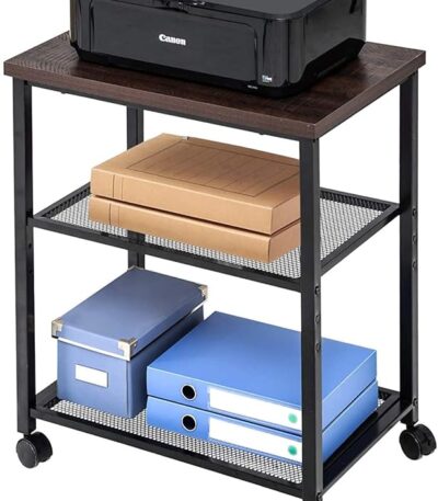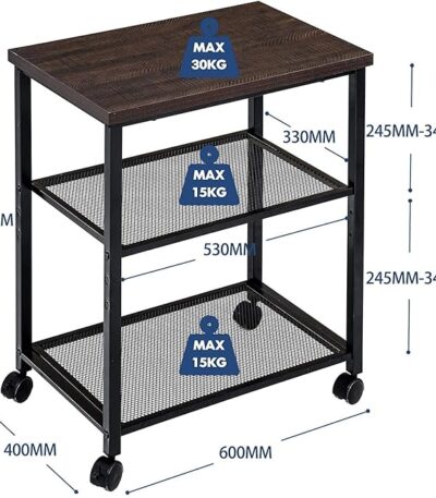 INDIDECOR 29800 Wooden-MDF Printer Stand, Trolley with Wheels with Sturdy Metal Frame, 2-Tier Desktop Storage Organiser for Fax Machine, Scanner, Files, Office Supplies, 60x40x70cm – Black
