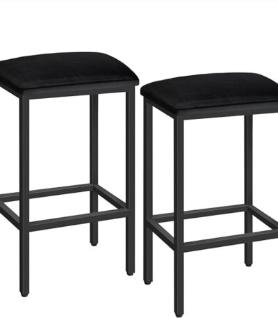 INDIDECOR 61848 Bar Stools, Set of 2 PU Upholstered Breakfast Stools, 2-Piece Bar Chairs, 26.8-Inch Height, Rectangular Industrial Bar Stools, for Dining Room, Kitchen, Counter Bar, Black