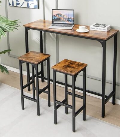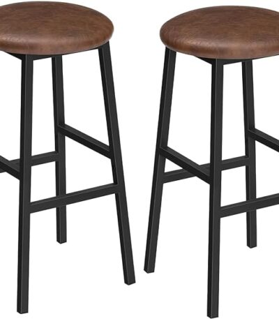 - 2-Piece Round Bar Stools: This vintage industrial round bar stool is simple in look. Rustic brown panels inject a warm vibe, straightforward steel frames manifest tough elegance,Striking a balance between comfortable home living and industrial trends.