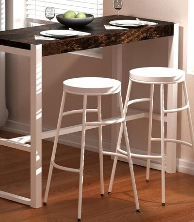INDIDECOR 61854 Bar Stools, Set of 2 Breakfast Stools, Kitchen Counter Height Stools, 28″ Round Industrial Bar Chairs, for Dining Room, Kitchen, Counter Bar, White