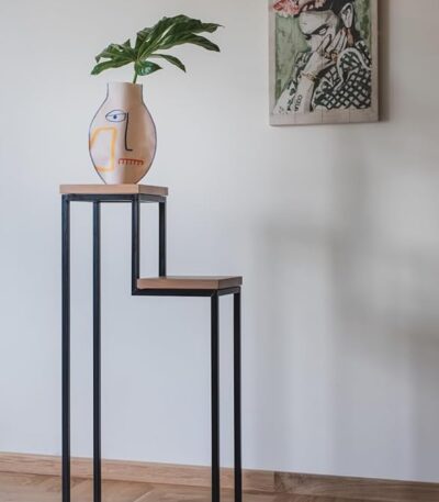 - The versatility is in the design. The graceful angular cut of the base with the secured wooden top makes them sit well together allowing you to display 2 plants in a minimum amount of space