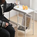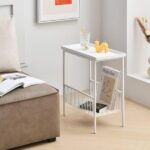 INDIDECOR 61977 Modern Side Table – Iron – White – Bottom Storage Rack for Books and Magazines – White